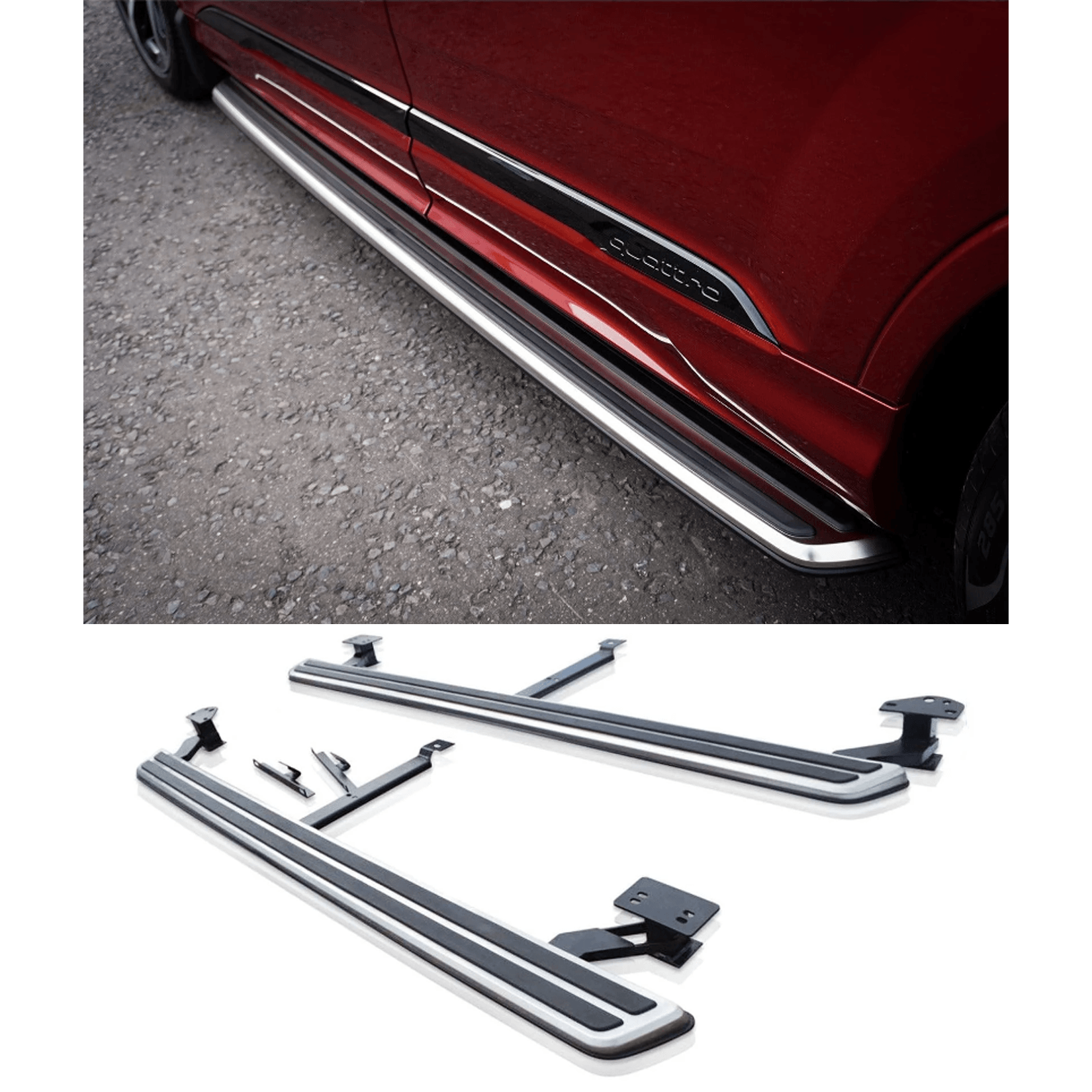 Fitment of the running boards is straightforward as the brackets will line up with the original mounting points on the vehicle, everything necessary for fitting is included in the purchase (steps, brackets, nuts, bolts and washers).