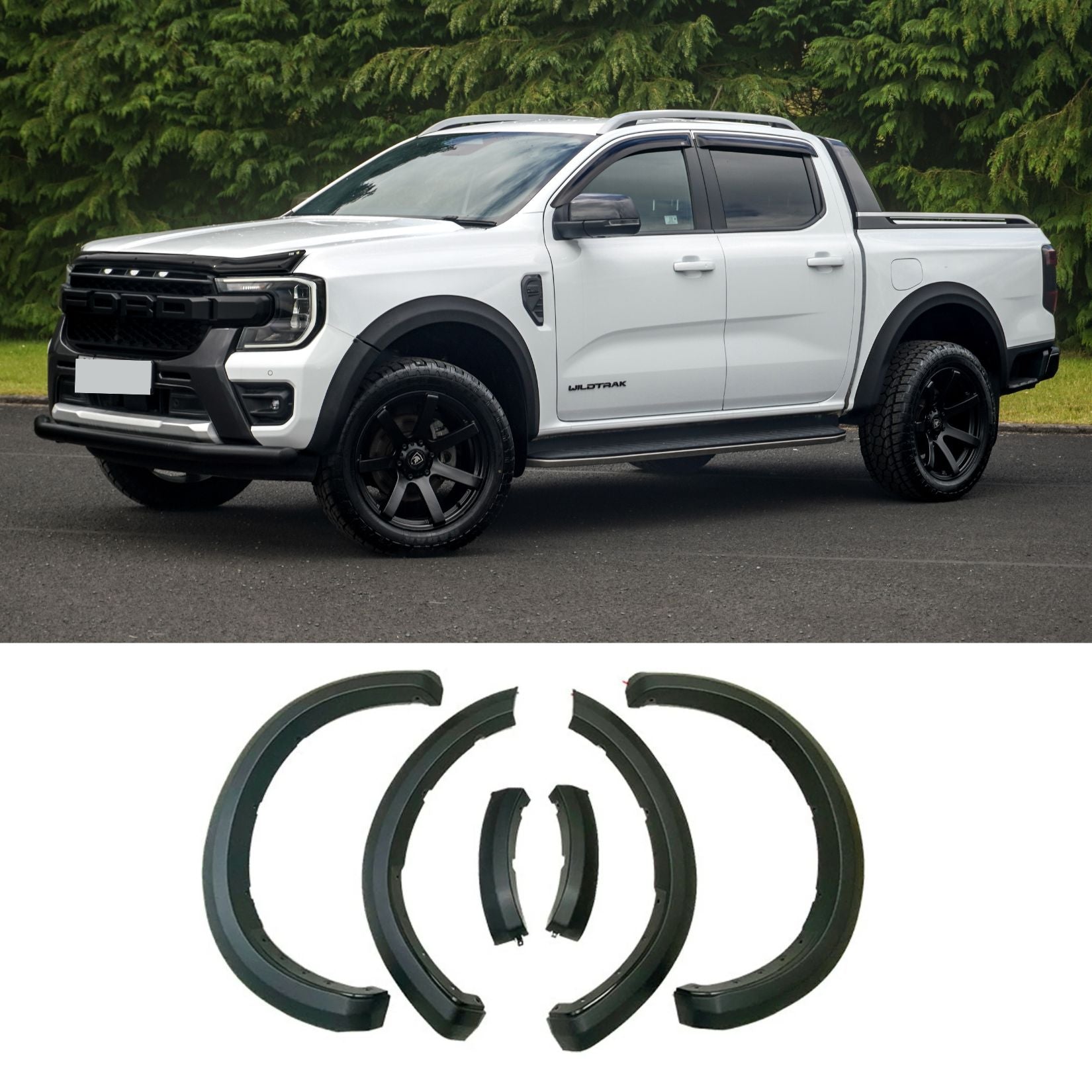 Title: Ford Ranger Wildtrak 2023 On Double Cab STX V2 Wheel Arch Kit Smooth Look Matt Black Finish - 6 PCS