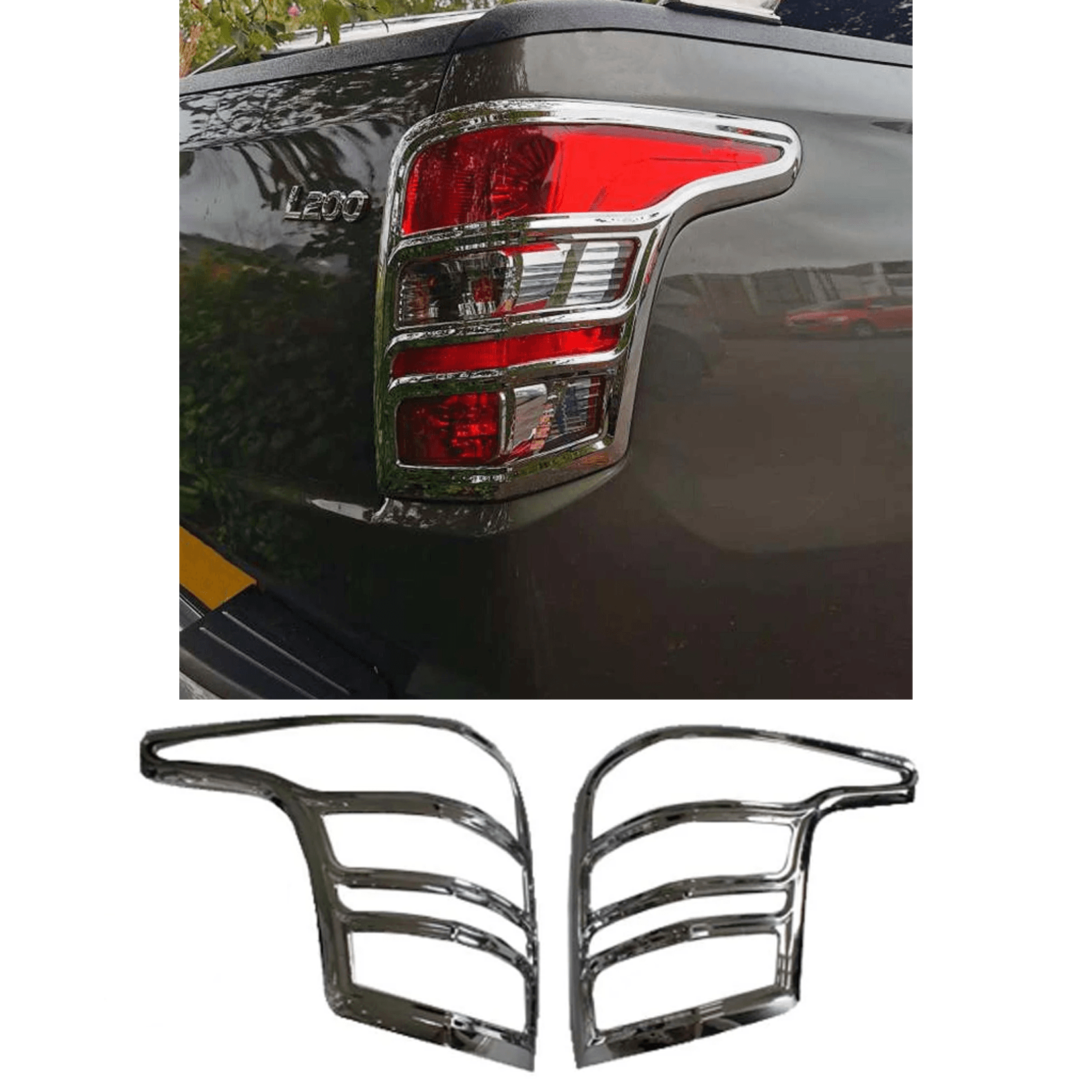 Top-quality chrome look tail light Cover set for the L200 SERIES 5. These stylish and attractive tail light covers will have your L200 looking top spec at a fraction of the cost of the genuine items but with the same high quality.