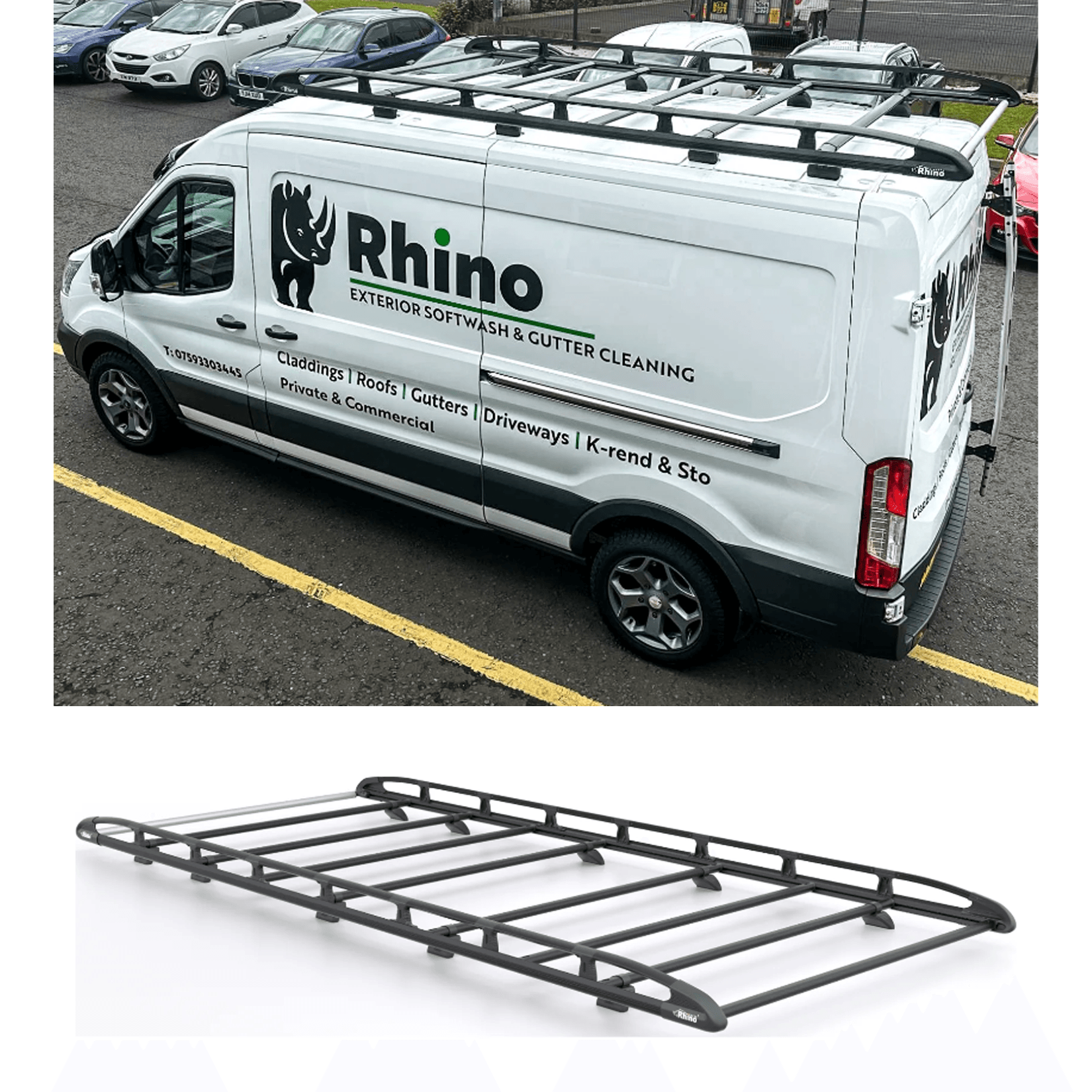 Title: Rhino KammRack Black Aluminium Van Roof Rack - Ford Transit 2014 On LWB Medium Roof (L3H2)