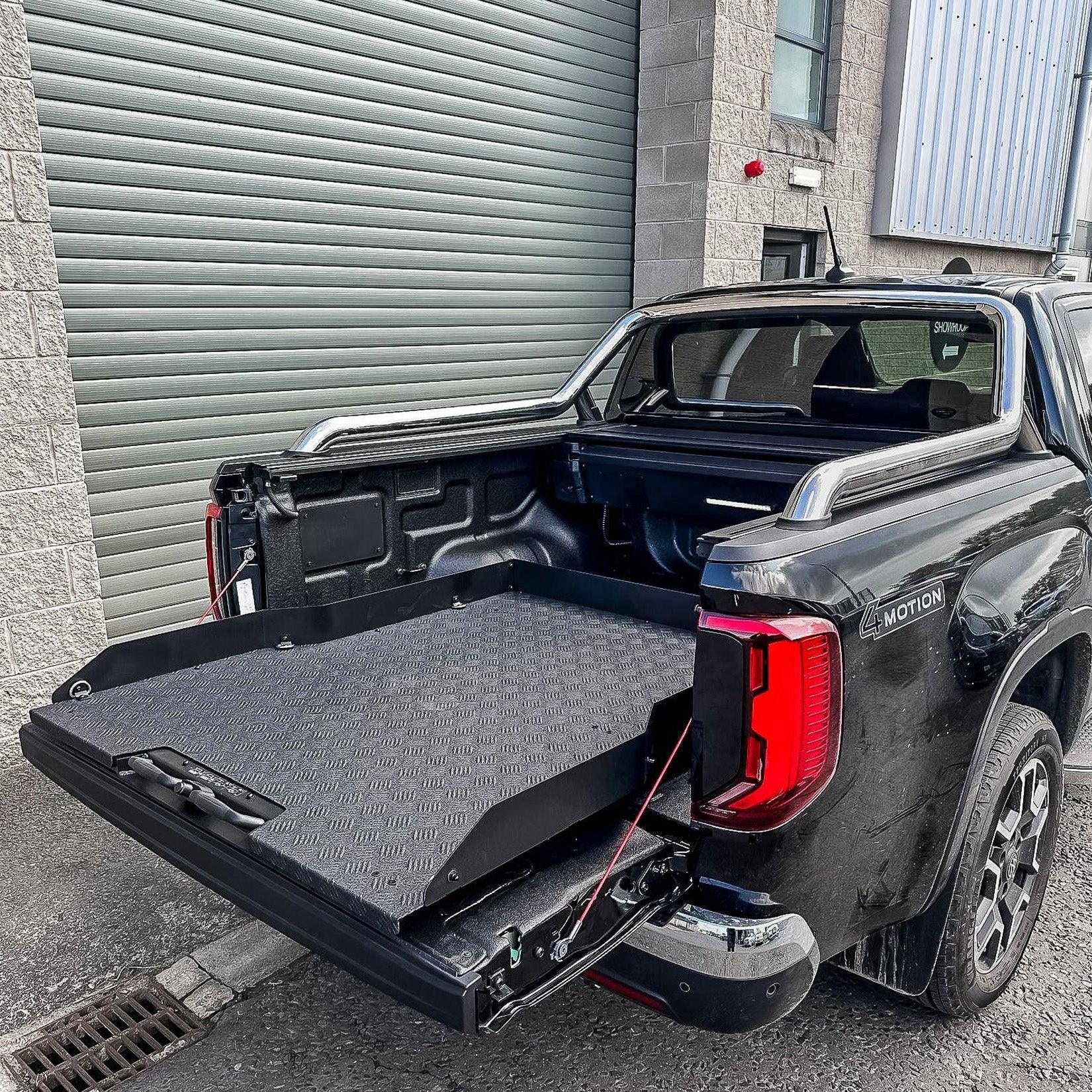 UNIVERSAL HEAVY DUTY LOAD BED METAL SLIDING TRAY FOR DOUBLE CAB PICK UPS - IN BLACK